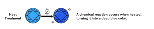 為了展現寶石原有的美麗,藍寶石通常會經過熱處理。這種處理能增加顏色的鮮豔度,市場上流通的大多數藍寶石都經過熱處理。 另一方面,經過擴散處理的藍寶石價值會降低。未經熱處理的藍寶石非常稀有,如果獲得 GIA 等鑑定機構的證書,其價值會更高。