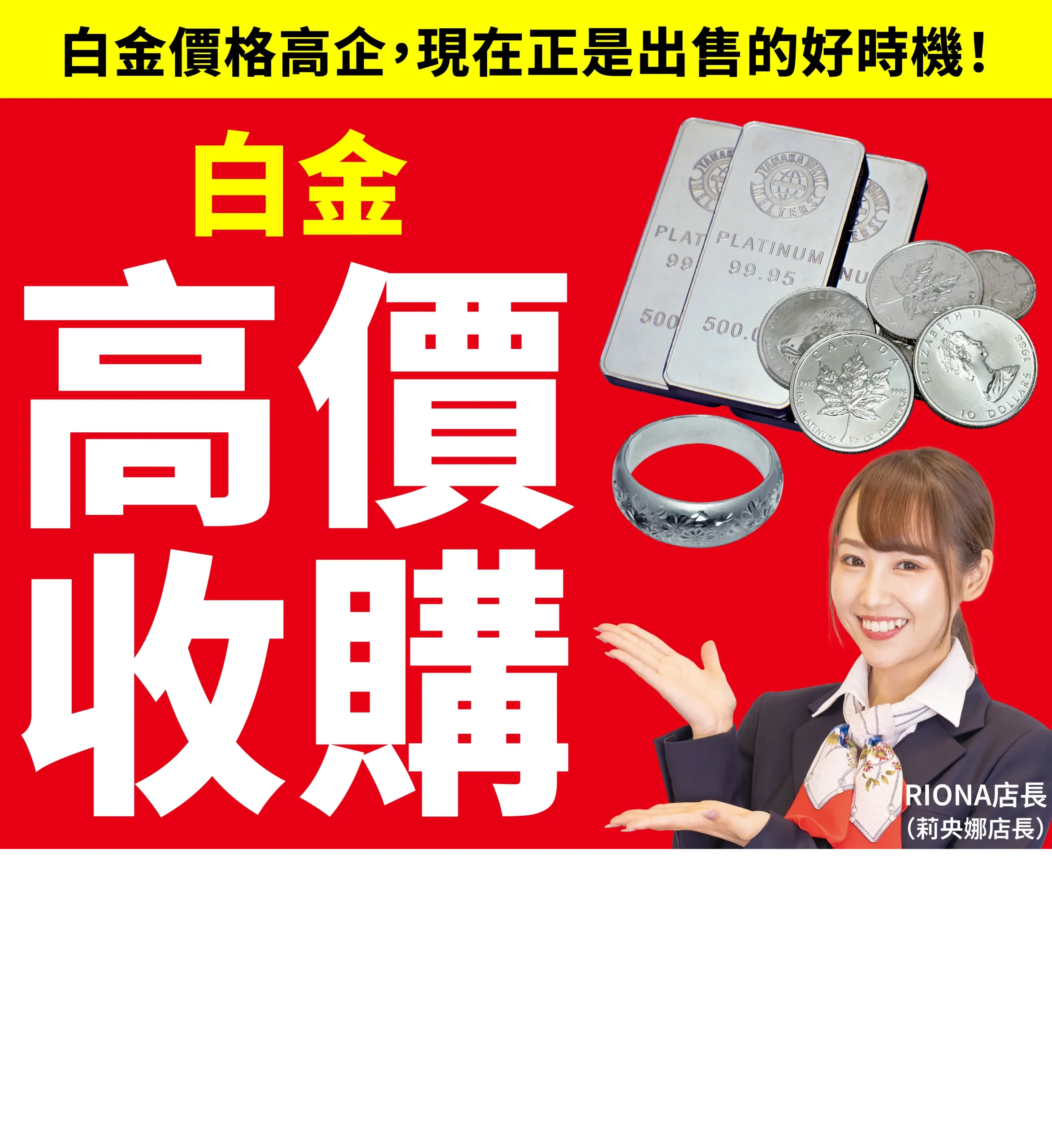 - 無論數量多少,我們都樂於為您鑑定和回收。即使您不確定是否為白金,我們也會免費為您鑑定,請隨時洽詢。
